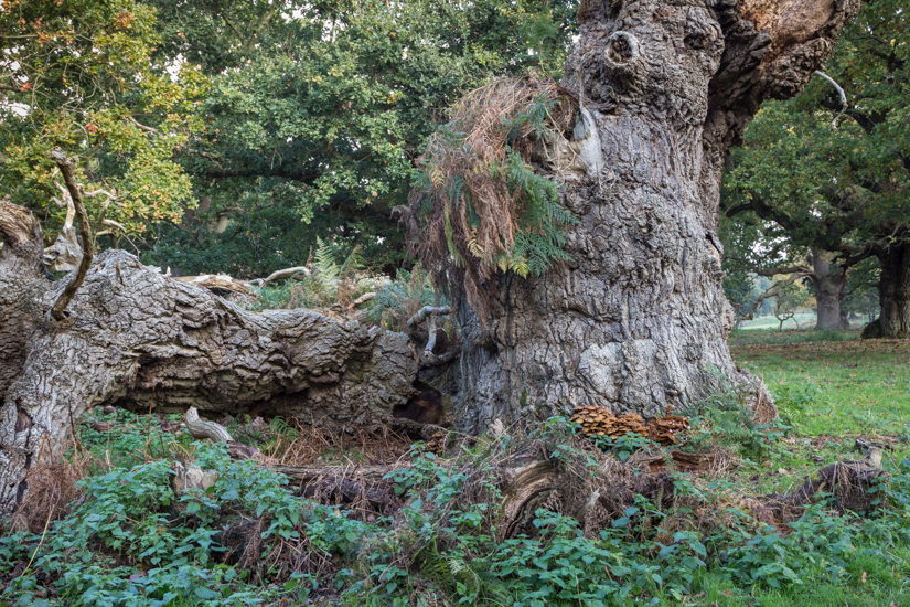 An ancient pollard oak now returning to the soil.