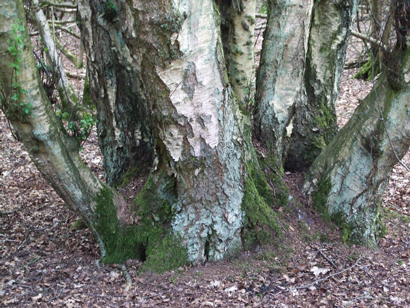 Birch re-growth from a collapsed old tree.