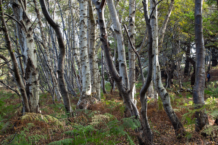 One of many stands of birch among ancient pollard oaks.