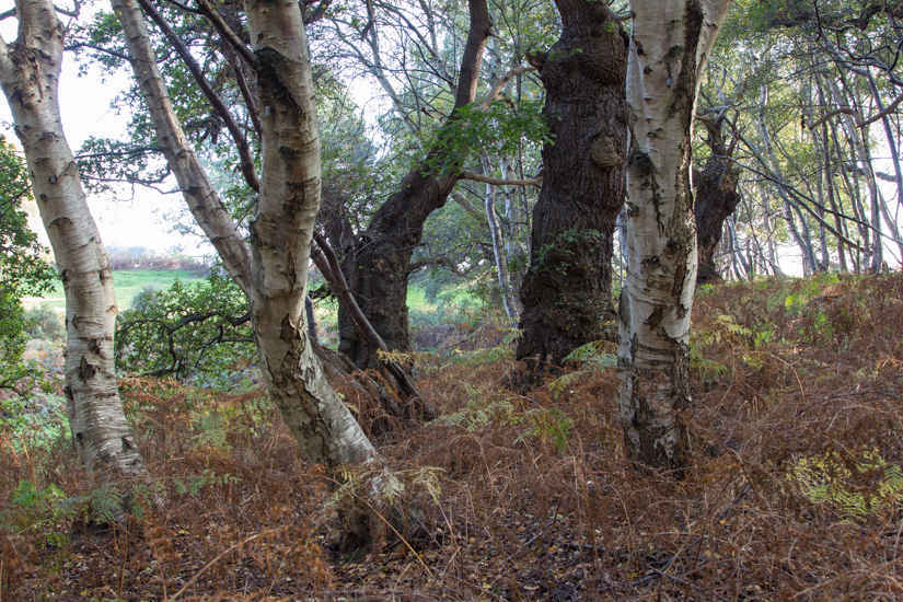 Birch and ancient oaks in close proximity.