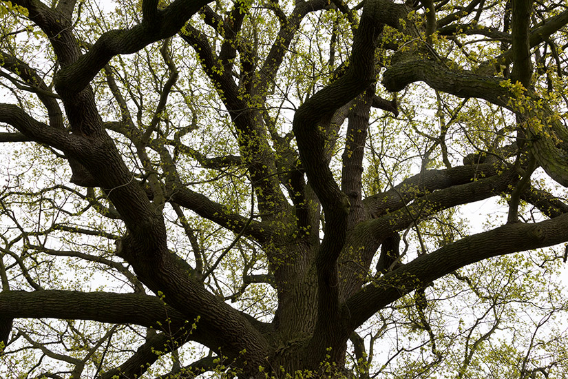 There is little light under the canopy of the Turner’s oak, planted at Kew in 1798.