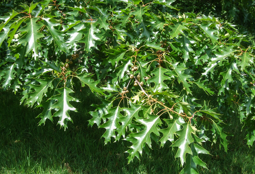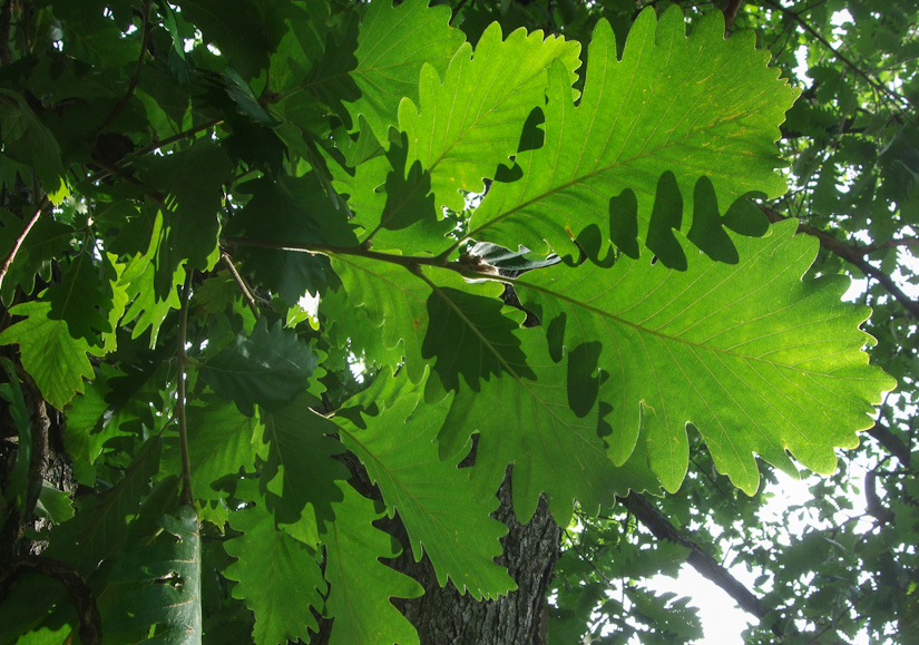 Turner’s oak, Quercus turneri, grown from one of the original saplings which were a cross between the Holm oak, Quercus ilex, and the Pedunculate oak, Quercus robur, created by Spencer Turner in 1783.