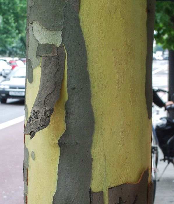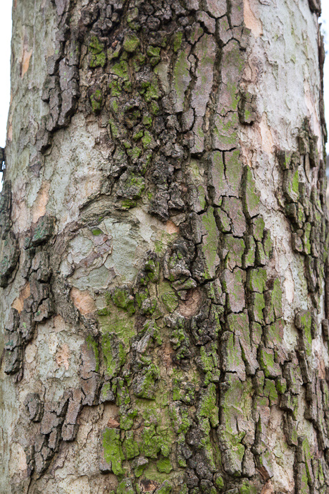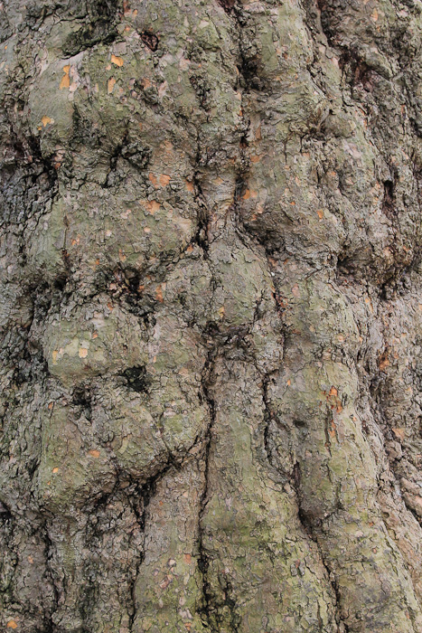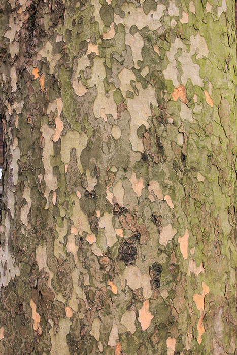 Bark of a ‘Pyramidalis’ variant of the London plane which develops a large girth showing columnar structures