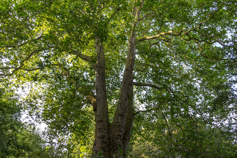 The larger plane is a huge tree that dominates its surrounding woodland.