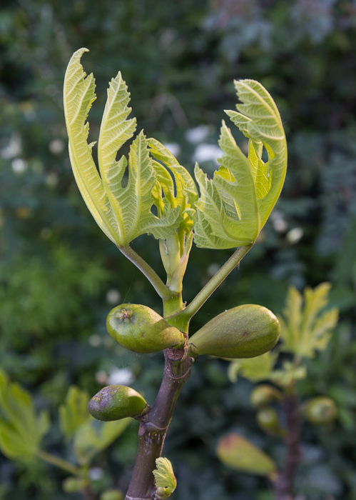 Young fig leaves and unripe figs.