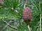 New cone of the Japanese larch, Larix kaempferi, early July, with typical outward turning tips of the scales.
