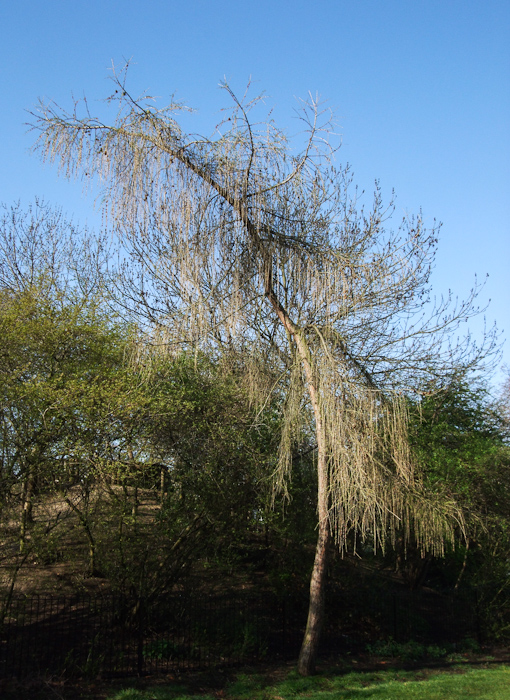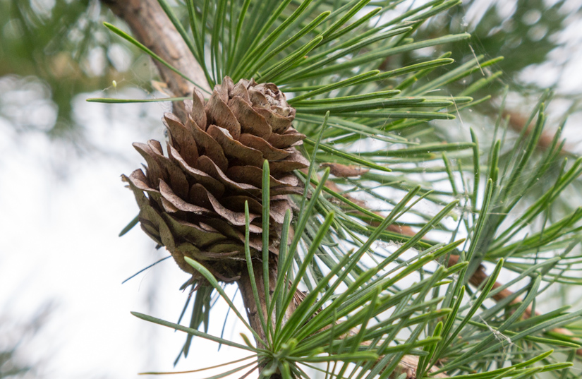 Previous year’s cone of the Japanese larch, Larix kaempferi, showing the outward turning tips of the scales, a characteristic of this species.
